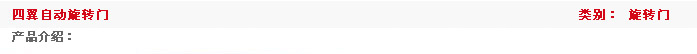 四翼不带展箱自动旋转门 四翼带展箱自动旋转门 四翼豪华自动旋 转门是设计的最新潮流,锐意创新,精心研制的普及型自动门。该门集美观、高性能、高科技、高精密度于一身,造型简洁,经济实用。先进一流的控制系统确保大 门时刻处于最佳运行状态。先进的设计理念,完善的造型工艺,造就出这样小巧精致的艺术珍品,为您提供稳静、安全、通畅的方便之门。四翼带展箱自动旋转门以其豁亮的内部结构,多样展箱布局,使入口成为动人景观,宽敞的行走空间,确保建筑的流量需求和行人的舒适从容。