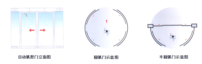 弧形门 这种门有一定的角度,分内弧型和外弧型。无论是多么复杂的建筑造型,我们都有能向您提供相应的设计方案。 自动弧形门具有优美、柔和的弧线外观造型,配以晶莹、通透的玻璃门扇,在一开一闭之间,令您领略到弧形门自身散发出的轻盈、和谐之美。无论是外弧形门还是内弧形门,都可在配合建筑物入口设计要求的同时,为您营造一个舒适、安全、宁静的通行空间。